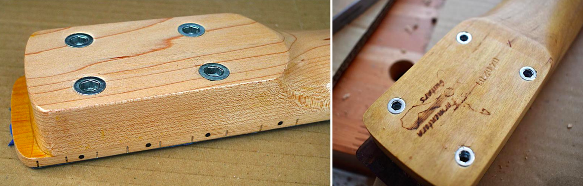 Ich gebe zu, ganz so sauber waren die Bohrlöcher im Body nicht, es reichte aber, die Schrauben ein paarmal durchzuziehen, um letzte Grate zu beseitigen.Hat mit dem Preis überhaupt nichts zu tun. Bis jetzt musste noch jede Fender die mir untergekommen ist "aufgebohrt" werden um den Hals ordentlich montieren zu können.