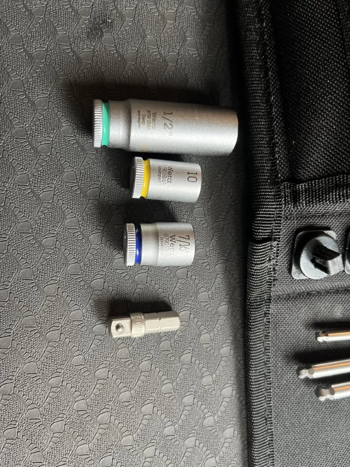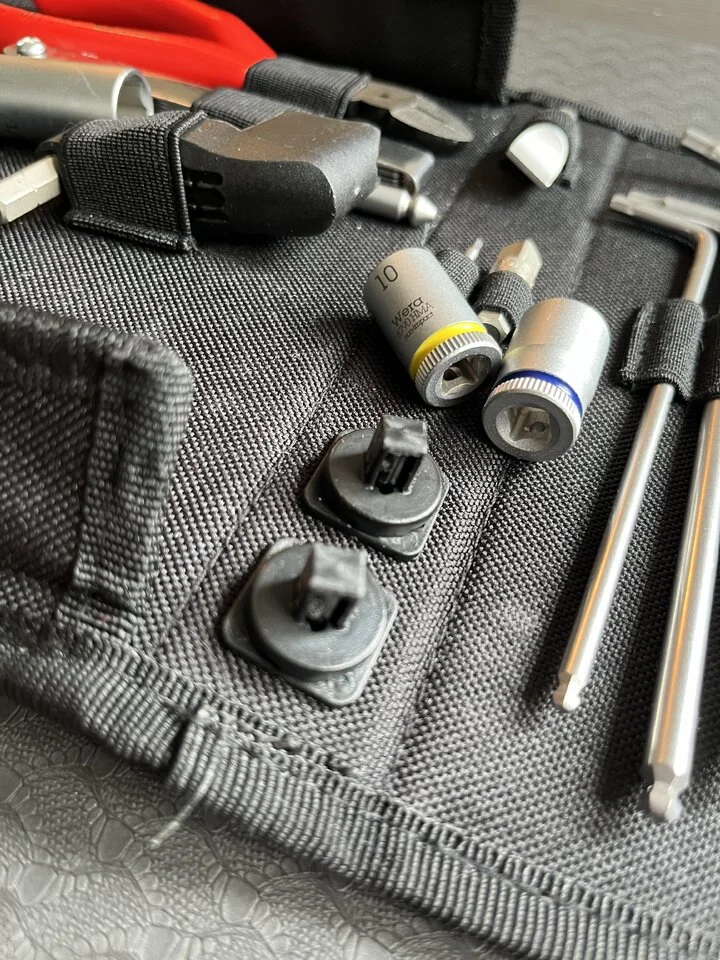 Eine kleine Kritik gibt es dennoch. Zwei Bits werden im der Tasche zu verstauen auf die entsprechenden Bithalter gesteckt. Unterdessen halten die Bits da nicht mehr und wenn man nicht vorsichtig ist, besteht die Gefahr, dass man sie verliert. Da muss ich mir noch eine Lösung überlegen.