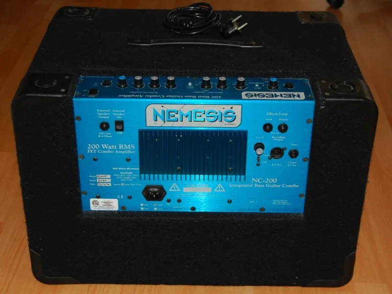 Nun zum Thema: Ich hab mir in der Bucht einen Nemesis NC-200 Combo gegönnt, das Teil das ich schon immer haben wollte.. Naja, nicht ganz, ursprünglich wollte ich Top+Box aber egal. Problem ist aber, dass ich heute im Proberaum war und das Ding vermutlich zu leise ist... für alle die nicht wissen was der Combo so kann:
