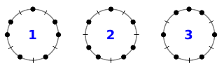 Man erkennt schön, daß keiner der drei Ringe durch Drehung mit einem der anderen zur Deckung gebracht werden kann.